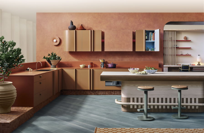 Laminex French Cream, Pale Honey and Burnt Ochre tie wet spaces to bedrooms, wardrobes to living spaces, and “it works beautifully, looks great, is cost effective and easy to clean and maintain,” says Brady. The specification of Laminex products “was absolutely client-led and contributed to the success of the project. Nick and Sophie made the final call on the Laminex colours and their placement in the house,” finishes Brady.